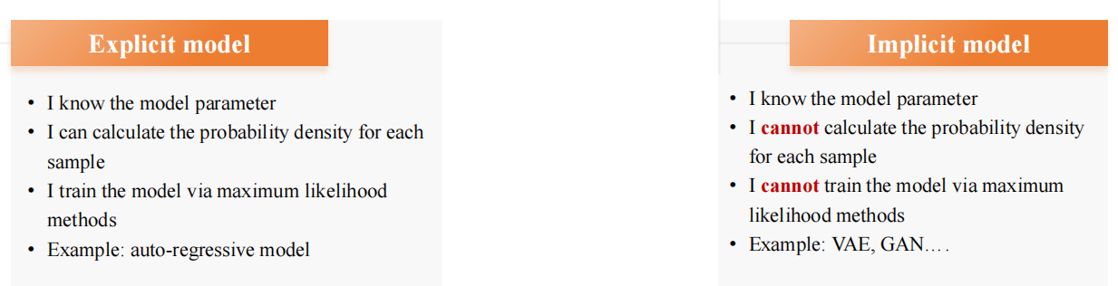 显式模型可以计算概率密度函数,因此可以通过MLE方法来训练,隐式则不能