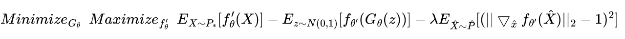 $\min_{G_{\theta}} \max_{D_{\theta}} E_{x \sim P_{\ast}}[logD_{\theta}(x)]+E_{x \sim P_{\theta}}[log(1-D_{\theta}(x))]$