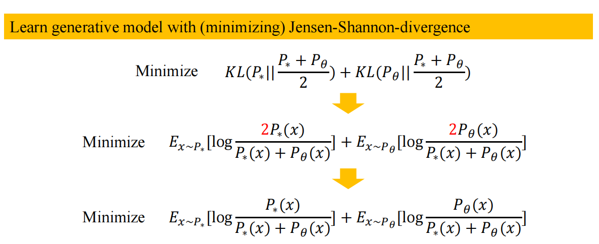 如图,即为最小化上面的JS散度