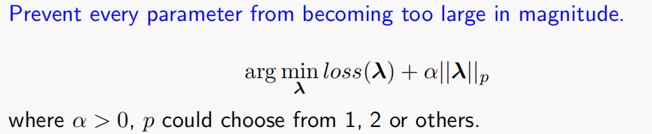 上面是正则化的一般形式,其中$p$取2即为我们最常用的L2正则化