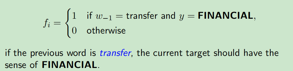 总而言之在nlp中,特征通常表示为$x$与$y$的函数,即$f_{i}(x,y) \in R$,更常见的是二元或指示函数