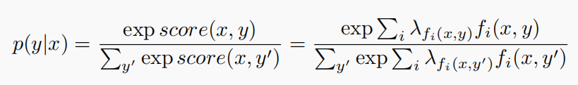 $y^{\ast}=argmax_{y} \Sigma_{i}\lambda_{f_{i}(x,y)}f_{i}(x,y)$