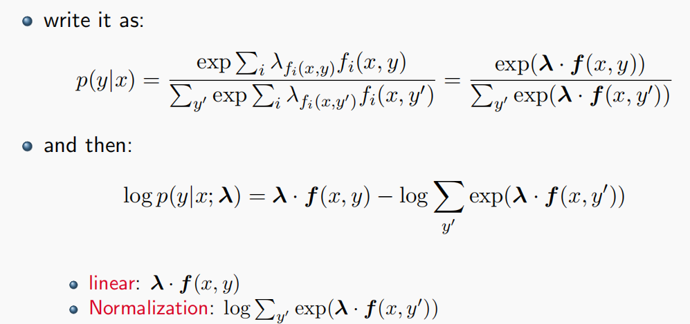 其中前一项为线性项,后一项为正则化项,这就是Log-Linear Model