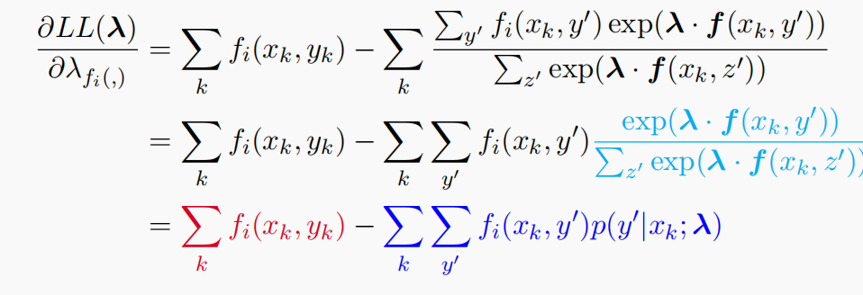 所以我们要$maximize LL(\lambda)$,分别对于每一个$\lambda_{f_i}$求偏导,令偏导数为0