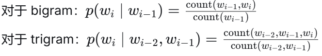 所以我们要做(马尔可夫)假设!假设当前词的概率分布只与先前的几个词相关,于是就有了N-gram模型